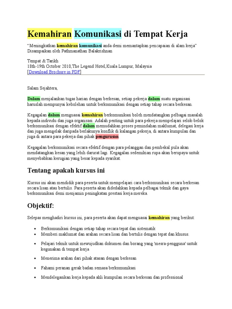 Kemahiran Komunikasi Di Tempat Kerja Pdf